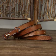 This 1.5CM Thin Leather Belt is the perfect blend of timeless elegance and modern simplicity. Crafted from premium cowskin leather, this belt offers a luxurious feel with a soft, comfortable fit that only gets better with time. Its narrow 0.6-inch width creates a flattering silhouette, adding a sleek accent to any outfit without overpowering it. The lustrous copper buckle complements the belt’s understated style, making it an ideal choice for those who appreciate sophisticated yet subtle accessories.