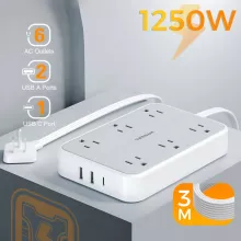 Perfect for homes, offices, and dorm rooms, this power strip combines functionality with style. It offers superior protection for your electronics with its built-in 1080J surge protector and overload protection. Whether you’re powering up your laptop, phone, tablet, or other gadgets, this power strip delivers efficient charging with a total output of 1250W.
