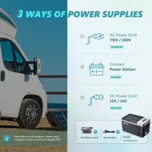- Dual Power Flexibility: Whether you’re on the road using 12/24V DC or at home with 110-240V AC, this fridge can be easily connected and powered in multiple scenarios.