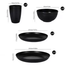 - Complete Set: Includes 4 plates, 4 bowls, 4 cups, and 4 cutlery sets (fork, knife, spoon).