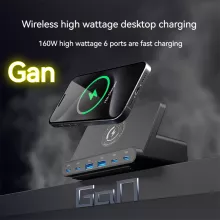 Streamline your charging needs with the 160W GaN PD Fast Charger, a universal solution designed to power up all your devices quickly and efficiently. This charger combines cutting-edge GaN technology, Power Delivery (PD) up to 65W, and a built-in wireless charging pad, making it the perfect all-in-one charging hub. Ideal for laptops, smartphones, tablets, and other USB-powered devices, it delivers exceptional power without compromising portability or safety.