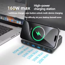 - High Power Output: Supports up to 160W total power, capable of charging multiple devices simultaneously.