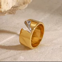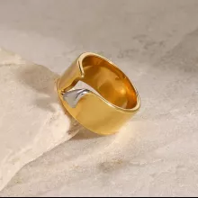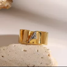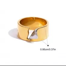 Crafted with meticulous attention to detail, this ring combines trendsetting design with premium materials. Its color-blocked pattern exudes contemporary charm, while the 18K gold plating guarantees a radiant finish that lasts. Whether worn as a statement piece or stacked with other rings, this versatile accessory complements any style and occasion.