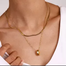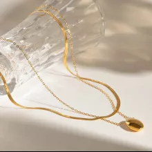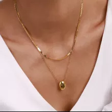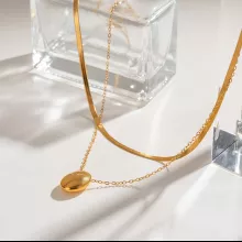 - Design: A double-layered snake chain paired with an oval pendant for a chic and versatile look.