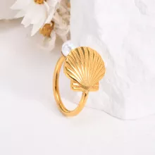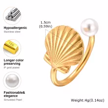 18k Gold Plated Adjustable Open Ring with Seashell Pearl for Women