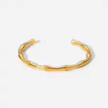 This cuff bracelet stands out with its minimalist yet bold design. The 18K gold plating ensures lasting shine, while the lightweight stainless steel construction offers durability without compromising on comfort. Its open cuff style makes it easy to wear and adjust, providing a secure fit for most wrist sizes. The bamboo-inspired texture adds a touch of nature-inspired elegance, making it a versatile accessory for any outfit.