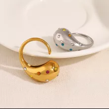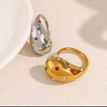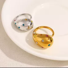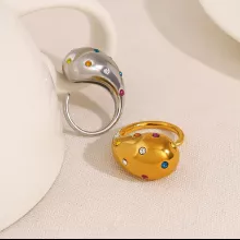 Unlike ordinary rings, this piece features an eye-catching combination of colorful crystals and a chunky design, making it truly one-of-a-kind. The 18K gold plating ensures it maintains its luxurious shine, while the stainless steel base guarantees durability. It’s not just a piece of jewelry—it’s a statement of confidence and individuality.