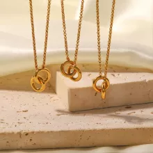 What sets this necklace apart is its timeless double-ring design combined with modern craftsmanship. The 18K PVD gold plating ensures it retains its rich gold tone while being resistant to everyday wear and tear. The hypoallergenic material makes it safe for all skin types, giving you a worry-free, stylish experience.