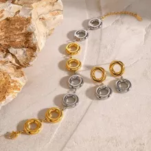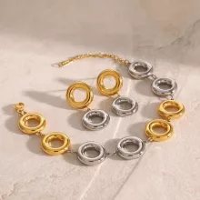 Elevate your accessory game with the 18K Gold-Plated Stainless Steel Earrings and Bracelet Set. Designed with a glossy shine and a sleek, minimalist circle pattern, this jewelry set exudes elegance and sophistication. Whether you’re attending a wedding, formal event, or adding a luxurious touch to your everyday look, this earrings and bracelet duo is a versatile and stylish choice.