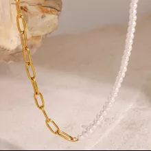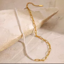 Transform your style with the 18K Gold Plated Glass Pearl Chain Necklace. Its elegant design and durable craftsmanship make it a perfect gift for yourself or a loved one. Embrace timeless beauty with a modern twist and make this standout piece your new favorite accessory. Order yours today!