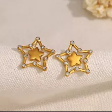 Don’t miss out on adding this gorgeous pair to your jewelry box. Order your 18K Gold Plated Stainless Steel Star Crystal Stud Earrings today and shine brighter every day!