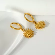 18K Gold Plated Stainless Steel Sun Face Dangle Hoop Earrings for Women