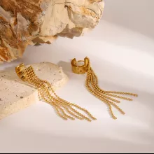 Enhance your style with these exquisite 18K Gold Plated Tassel Drop Earrings. Designed for the modern woman, these earrings feature delicate tassel details and a sleek drop design that radiates sophistication. Whether you’re dressing up for a special occasion or adding a touch of elegance to your everyday outfit, these earrings are the perfect accessory to make you stand out.