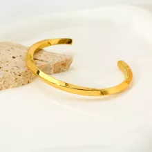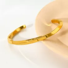 This twisted cuff bracelet stands out with its elegant and contemporary design, making it a versatile piece that complements any outfit. The twisted texture catches the light beautifully, creating a dynamic and eye-catching effect. Crafted with high-quality stainless steel and PVD 18K gold plating, it is resistant to tarnish and waterproof, ensuring it maintains its stunning appearance over time. The hypoallergenic material makes it a comfortable and safe option for sensitive skin, so you can wear it confidently all day long.