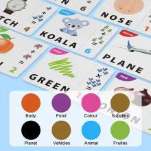 - Includes 32 double-sided cards with 64 words and math questions for endless learning