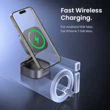 With this charger, you’re not only getting a charging stand but an upgrade to your daily routine. The stand’s magnetic lock keeps your devices securely in place, and with adjustable viewing angles, you can comfortably watch videos, take calls, or scroll through social media while your phone charges. This charger is built with efficiency and style in mind, and the foldable, compact design makes it a perfect travel companion. Say goodbye to tangled cables and limited power outlets – now you can power up multiple devices at once, hassle-free.