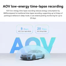 Keep your vehicle safe with low-energy and quick-response parking monitoring. The advanced AOV technology reduces energy consumption by up to 800%, allowing up to 8 days of surveillance. In sleep mode, it extends parking monitoring to an impressive 20 days, instantly activating to record any anomalies.