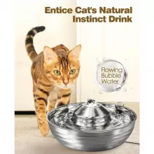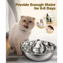 Ensure your pets are drinking enough water every day with this 2L stainless steel water fountain, perfect for both cats and dogs. Its durable design and open-bowl structure encourage your pets to drink more, promoting better hydration and overall health. With a capacity of 67 oz, this water fountain is ideal for households with multiple pets. The ultra-quiet operation and double filtration system provide clean, fresh water all day, without disturbing your home environment. Whether you have cats, dogs, or both, this fountain offers a simple and effective way to keep your pets happy and hydrated.