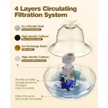 This water fountain is more than just a simple pet bowl. Its 360° water flow system entices pets to drink more by constantly circulating and oxygenating the water, which helps prevent urinary and kidney issues. The ultra-quiet pump won’t disturb your household, even during the night, while the double filtration system ensures your pets always have access to clean, pure water. Whether power is on or off, the open-bowl design allows your pets to access water at all times, ensuring they never go thirsty. Plus, its 2L capacity makes it suitable for multi-pet households, so you won’t have to constantly refill it.