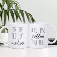 Nothing says “forever” like starting your day with a warm cup of coffee together. The 2pc Coffee Mug Set, featuring the heartfelt message “Let’s Have Coffee Together for the Rest of Our Lives,” is the perfect gift for newlyweds, engaged couples, or any pair who cherishes their bond. These mugs make every morning extra special, creating a daily reminder of love, laughter, and togetherness.