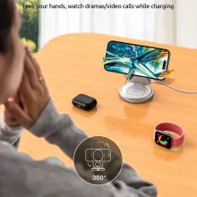 What sets this charging station apart is its convenience and versatility. The 3-in-1 design allows you to charge all your Apple devices at once, eliminating the clutter of multiple charging cables. The MagSafe-compatible charging pad keeps your iPhone secure while charging, and the 360° rotation gives you flexibility in how you place your devices. The sleek, modern design fits in any space, whether it’s your desk, nightstand, or travel bag. Plus, with a 15W output, your devices charge quickly and efficiently, so you can spend more time using them and less time waiting for them to charge.