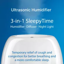 Designed with parents in mind, the 3-in-1 Sleepy Time Humidifier operates quietly, so it won’t disturb your child’s sleep. The tank is easy to grip and refill, and there’s no need for a filter, making it simple to maintain. Plus, the color-changing nightlight provides a soft glow, creating a comforting ambiance for your child’s room. This compact, tabletop humidifier is ideal for rooms up to 100 sq ft, making it perfect for nurseries, bedrooms, or playrooms.