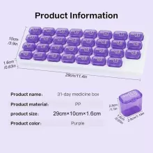 Whether you’re managing multiple medications or ensuring your daily vitamins are on track, this monthly pill organizer makes it simple. Each of the 31 compartments is numbered to correspond to the days of the month, taking away the hassle of daily tracking. Perfect for busy schedules, this organizer allows you to fill each compartment in one go, helping you streamline your health routine with ease.