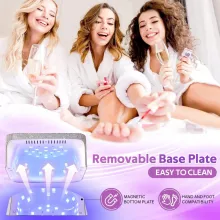 - Detachable Base & Spacious Design: The lamp’s large, removable base accommodates both fingernails and toenails, making it ideal for full hand and foot manicures. The spacious interior allows for easy placement without worrying about smudging your polish.