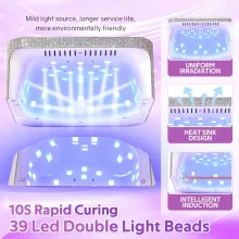 - Fast, Efficient Curing: Equipped with 39 high-performance LED beads, this lamp shortens curing time by 90%, making it perfect for a variety of gel types, including UV gel, LED gel, and extension gels.