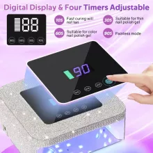 - Four Timer Settings: With timer options of 10 seconds, 30 seconds, 60 seconds, and 90 seconds, this lamp is versatile enough for a range of gels and curing needs. Use the quick 10-second setting for fast-drying, the 60-second mode for thicker gels, or the 90-second setting for a painless drying process.