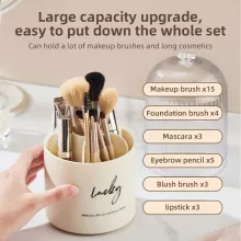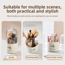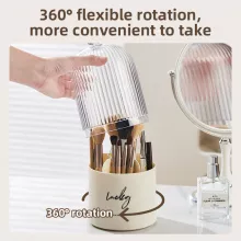 Transform your vanity into an organized, stylish space with our 360° Rotating Dustproof Makeup Brush & Lipstick Organizer. This sleek, compact storage solution keeps your makeup brushes, lipsticks, and other essentials at your fingertips, beautifully displayed yet fully protected from dust. Designed with a luxurious rotating feature, this organizer makes it simple to find your favorite items instantly. Perfect for beauty enthusiasts and minimalists alike, it saves space, maintains order, and brings a touch of elegance to your daily routine.
