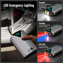 This device goes beyond basic emergency tools. Engineered for safety and ease, it’s ideal for those unexpected moments – whether you’re stuck with a dead battery, need to inflate a flat tire, charge your devices, or light up a dark area. Its compact design allows you to keep it within reach at all times, making it a smart choice for everyday drivers, road trip enthusiasts, and families alike.