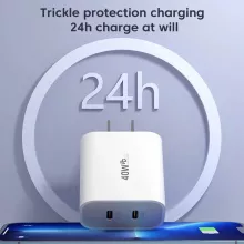 40W Fast Charger Type-C QC 3.0 Adapter with Dual PD Ports for Quick Charging