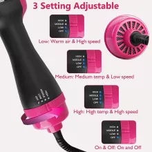 Our 5-in-1 Ionic Hair Dryer Brush stands out from the crowd thanks to its multifunctional capabilities and advanced technology. The negative ion technology is a game-changer, ensuring that your hair remains protected from heat damage while achieving a glossy, salon-finished look. The customizable settings mean that no hair type is left behind – from the thickest mane to the finest tresses, everyone can enjoy a bespoke styling experience.