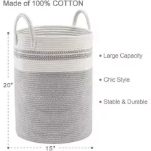 Keep your home tidy and stylish with this 58L Large Cotton Rope Laundry Hamper. Designed to hold your family’s clothes, blankets, toys, and more, this tall, spacious basket (15″ x 20″) provides an easy and chic solution for clutter-free living. Made from 100% soft cotton, it’s gentle enough for babies, pets, and the elderly, ensuring safety and peace of mind in every room. With its modern woven design and pastel tones, it not only serves as a functional storage option but also adds a decorative touch to any space. Whether it’s the living room, nursery, bedroom, or laundry room, this laundry hamper effortlessly blends into your décor.