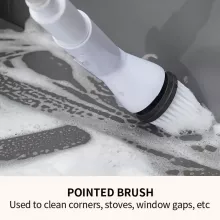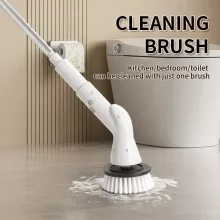- 6 Interchangeable Heads: Includes six different brush heads, such as a soft polishing head, velvet brush, toilet brush, large and small flat brushes, ensuring every cleaning need is covered.