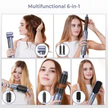 Say goodbye to cluttered bathroom counters and countless styling tools! The 6-in-1 Detachable Hair Dryer Brush is your ultimate all-in-one solution for fast, efficient styling. With high-speed blow-drying power, a negative ionic air curler, and a variety of brush heads, this tool allows you to create gorgeous hair styles effortlessly. Whether you want sleek straight hair, voluminous curls, or smooth waves, this versatile styling brush makes it possible in one compact, easy-to-use device.