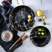 Elevate your dining experience with these stunning 8/10 Inch Marble Ceramic Dinner Plates, beautifully designed with a luxurious gold inlay. Perfect for serving everything from steak to desserts, these plates add a touch of sophistication to any meal. The elegant marbled design combined with the delicate gold accents makes them an eye-catching addition to your table, ideal for both casual family dinners and formal gatherings. Crafted from high-quality ceramic, these plates are not just visually appealing but also durable and long-lasting, perfect for everyday use or special occasions.