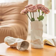 This vase is not just a container for flowers – it’s a work of art. The ceramic material provides a clean, smooth finish, while its pure white color exudes elegance. The crinkle effect mimics the texture of a paper bag, creating an eye-catching visual appeal. Measuring 9.18 inches in height, it’s perfectly sized for tabletops, desks, or shelves, enhancing any corner of your home.