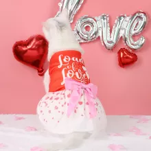 Turn heads and melt hearts with this adorable dog dress designed for small dogs. Perfectly crafted for style and comfort, this heart-printed outfit is ideal for celebrating Valentine’s Day or simply adding a little love to everyday outings. The charming bowknot and tulle design make this dress an irresistible addition to your furry friend’s wardrobe, ensuring your pup looks their best wherever they go.