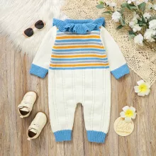 Wrap your baby in warmth and comfort with this charming knitted romper. Designed for babies from newborn to 18 months, this soft, long-sleeve jumpsuit is the perfect addition to your child’s fall and winter wardrobe. The adorable star and rainbow stripes add a fun, playful touch to the romper, while the high-quality acrylic material ensures durability and warmth. Suitable for both baby girls and boys, this romper is a delightful blend of comfort, cuteness, and practicality.