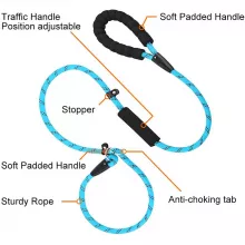 Walk your dog with confidence and control using the Anti-Choking Reflective Dog Leash. Designed for medium to large dogs, this strong, slip-style leash combines the convenience of a collar and leash in one. The leash features a built-in metal tab to prevent over-tightening, ensuring gentle control without choking your dog. With two foam-padded handles, this leash gives you flexibility for various walking situations, offering comfort and control whether your dog is exploring or walking close by. Plus, reflective threading enhances visibility for safer nighttime walks.