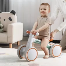 With its 4-wheel structure, this balance bike provides extra stability compared to traditional 3-wheel bikes, making it easier and safer for toddlers to learn. The bike is crafted with a lightweight yet sturdy aluminum alloy frame, ensuring it can withstand daily use while remaining easy for little ones to maneuver. Its non-slip handlebars and cushioned seat ensure your child stays comfortable while learning to ride, while the smooth, silent TPU wheels glide effortlessly on a variety of surfaces.