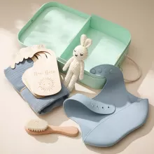 This Baby Bath Gift Set combines essential bath and feeding items with playful elements to make caring for a newborn simple and enjoyable. The soft cotton towel wraps babies in cozy warmth post-bath, while the silicone bib ensures feeding time is mess-free and easy to clean up. The gentle bath brush is designed to be effective yet soothing, providing a spa-like experience for delicate baby skin. And with the bunny hand puppet, parents can make bath time an engaging and joyful experience, helping babies look forward to their baths and clean-up routines.