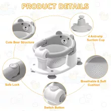 • Ergonomic Structure: The seat is designed to provide optimal comfort and support, keeping your baby in the perfect position for a relaxed bath experience.