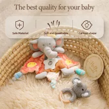 Welcome a newborn in style with this charming Baby Gift Set, complete with a soft cotton scarf, crochet animal rattle, and milestone cards. This delightful set is designed to celebrate each stage of a baby’s early days, combining practical essentials with playful items to create cherished memories. The cozy cotton scarf doubles as a feeding towel, perfect for keeping little ones comfortable and dry during feedings, while the crochet animal rattle provides gentle sensory stimulation. Whether for a baby shower, first milestone celebration, or as a heartfelt gift, this set is crafted to bring joy and comfort to both babies and parents alike.