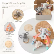 This versatile baby gift set has been thoughtfully curated for parents looking to capture and celebrate every moment. The soft cotton scarf is ideal for feeding time, keeping babies dry and comfortable while adding a touch of style. The crochet animal rattle provides gentle sound and texture, engaging babies in early sensory play that supports fine motor skills. Parents will also appreciate the milestone cards, which make it easy to document and share each precious moment with family and friends. Designed to be practical yet adorable, this gift set is perfect for newborns through toddlerhood, making it a cherished keepsake that families will treasure.
