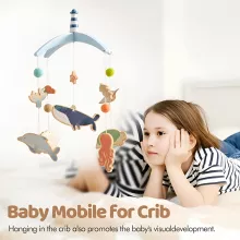 This crib mobile stands out for its delightful combination of visual appeal, soothing music, and interactive features. Ideal for babies up to 12 months, it’s designed to stimulate your child’s cognitive and sensory development in a fun and safe way. The soft whale design and musical elements make it a perfect addition to any nursery, while the sturdy wooden holder ensures long-lasting use.