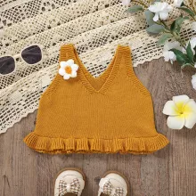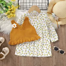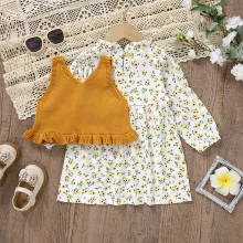 Wrap your little one in warmth and style with this adorable two-piece knit dress set, perfect for the cooler seasons. Featuring a delicate floral design with ruffle detailing, this outfit combines a cozy sweater vest and a matching skirt to create a look that’s both fashionable and comfortable. Made from soft cotton, this set is designed to keep your baby girl warm and cozy while offering flexibility for easy movement. With its timeless style and practical design, this is an outfit your little one can wear all autumn and beyond.