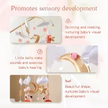 Elevate your baby’s crib with this delightful wooden mobile that combines style, safety, and entertainment. Its soothing features and timeless design make it an essential addition to any nursery. Create a calming environment for your little one and cherish moments of peace and happiness together.